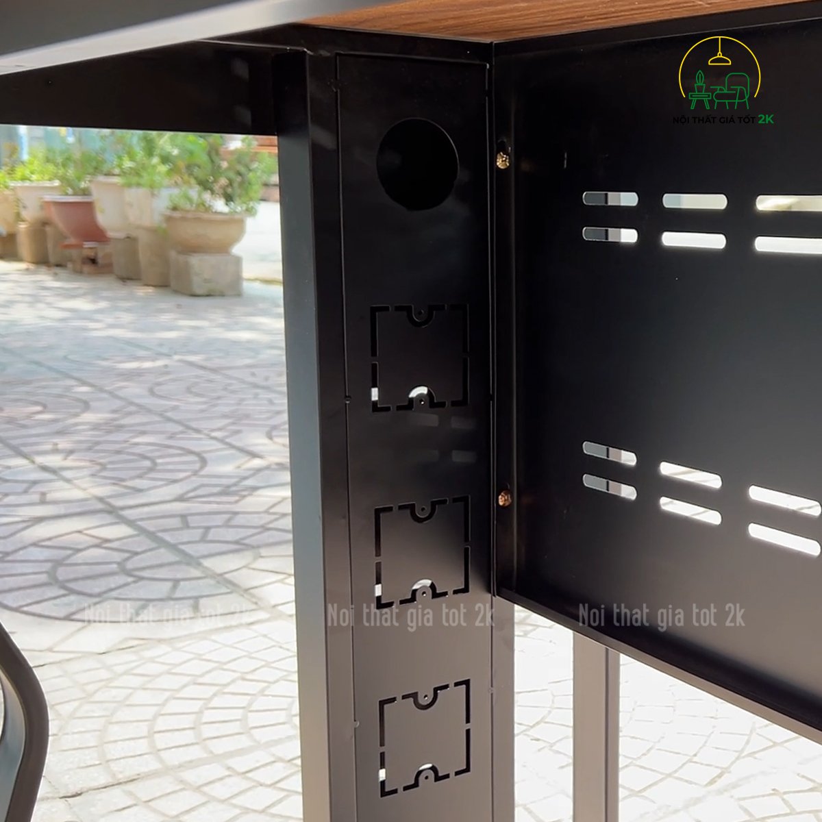 Mặt bàn gỗ công nghiệp MFC phủ Melamine chống xước, chống cong vênh, mối mọt. Bền bỉ theo thời gian. Có nhiều màu sắc lựa chọn phù hợp sở thích, màu chủ đạo văn phòng. Khung sắt sơn tĩnh điện, ống chân 40x40mm, giằng bàn 25x50mm sang trọng chống han gỉ và bong tróc. Khung bàn tạo nên cho bàn kiểu dáng hiện đại, vững chắc.Dưới khung bàn có đế chân nhựa chịu lực giúp hạn chế tiếng ồn khi di chuyển và tránh làm trầy xước nền nhà đặc biệt là sàn gỗ. |