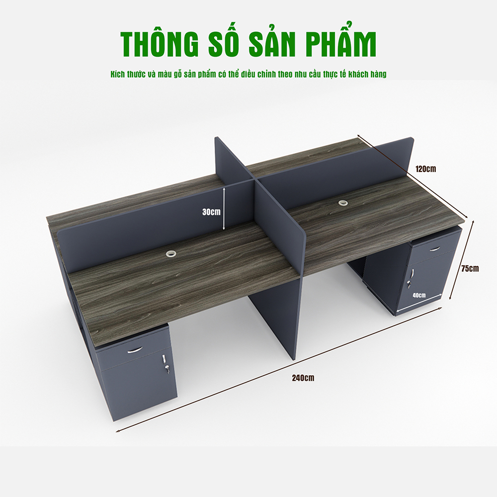 Với thiết kế cụm 4 chỗ ngồi, mỗi cá nhân đều có một không gian làm việc riêng tư, nhưng vẫn đảm bảo sự kết nối và tương tác cần thiết trong công việc nhóm. Đây là lựa chọn lý tưởng cho các doanh nghiệp đang tìm cách tối ưu diện tích văn phòng mà vẫn duy trì sự thoải mái và tập trung cho nhân viên.