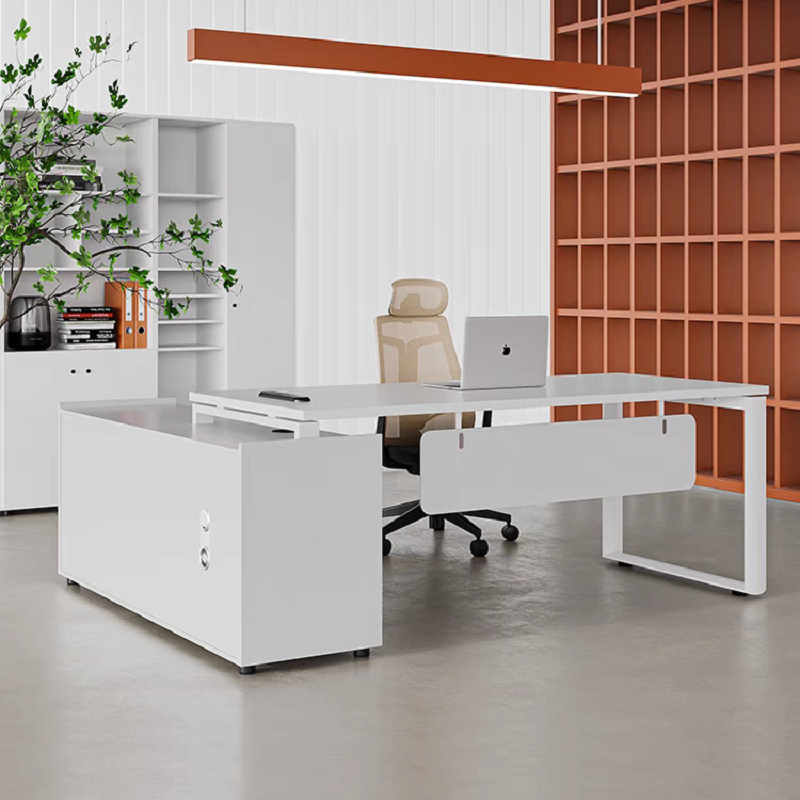 Bàn giám đốc 1m4 được thiết kế với các hộc kéo hoặc kệ để lưu trữ tài liệu và vật dụng làm việc. Có thể tích hợp các hệ thống quản lý dây cáp để giữ cho không gian làm việc gọn gàng.