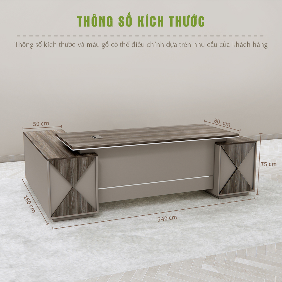 Tối Ưu Hiệu Suất Làm Việc: Với thiết kế tiện lợi và không gian lưu trữ thông minh, bàn giúp giám đốc sắp xếp công việc khoa học, tăng cường hiệu quả làm việc.