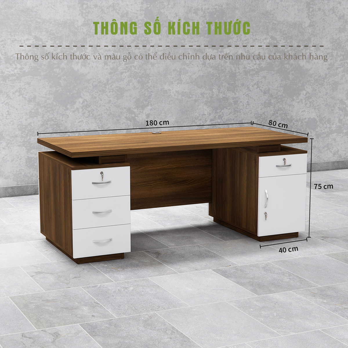 Bàn giám đốc 2KBGD105 không chỉ đáp ứng nhu cầu về công năng mà còn là biểu tượng của sự uy tín và chuyên nghiệp. Đây là giải pháp lý tưởng dành cho các doanh nghiệp mong muốn đầu tư vào một không gian làm việc cao cấp, mang đến sự thoải mái và khẳng định phong cách của người lãnh đạo.