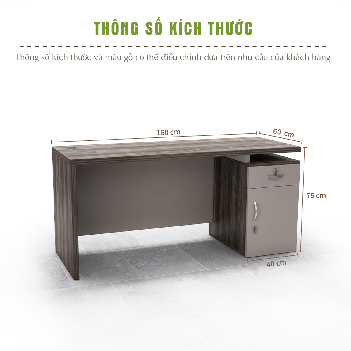 Bàn 2KBGD106 sở hữu thiết kế tối giản với đường nét mạnh mẽ, các góc cạnh vuông vức tạo nên sự bề thế và đẳng cấp cho không gian làm việc. Sự phối hợp màu sắc trung tính, trang nhã giúp bàn dễ dàng phù hợp với nhiều phong cách nội thất khác nhau, tạo nên vẻ đẹp hiện đại và thanh lịch.