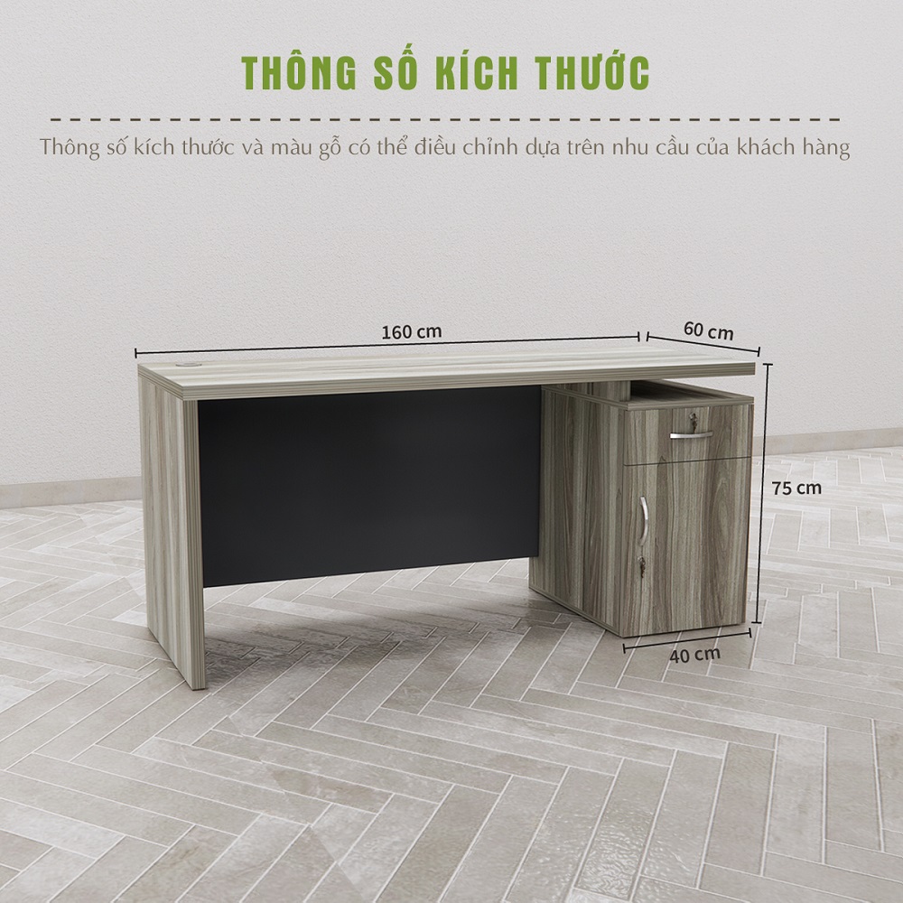 Bàn 2KBGD107 sở hữu thiết kế hiện đại với các chi tiết sắc sảo và bề mặt rộng rãi, mang đến vẻ đẹp mạnh mẽ nhưng vẫn thanh lịch. Các góc cạnh vuông vức kết hợp với màu sắc trang nhã tạo nên sự đẳng cấp và phong cách cho không gian làm việc.