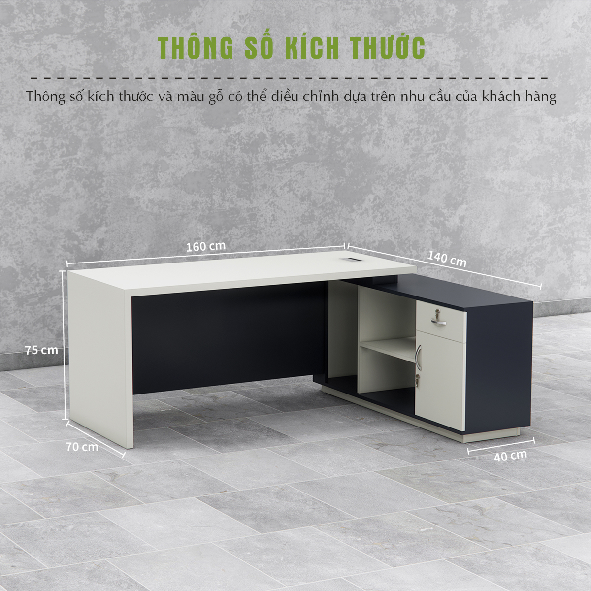 Bàn giám đốc 2KBGD116 sở hữu thiết kế tối giản nhưng đầy phong cách, với các đường nét thanh lịch và màu sắc trang nhã, mang lại vẻ đẹp hiện đại cho phòng làm việc. Kiểu dáng vững chắc cùng cấu trúc tinh tế giúp sản phẩm dễ dàng hài hòa với mọi không gian, đồng thời tạo điểm nhấn đẳng cấp cho nơi làm việc của lãnh đạo.