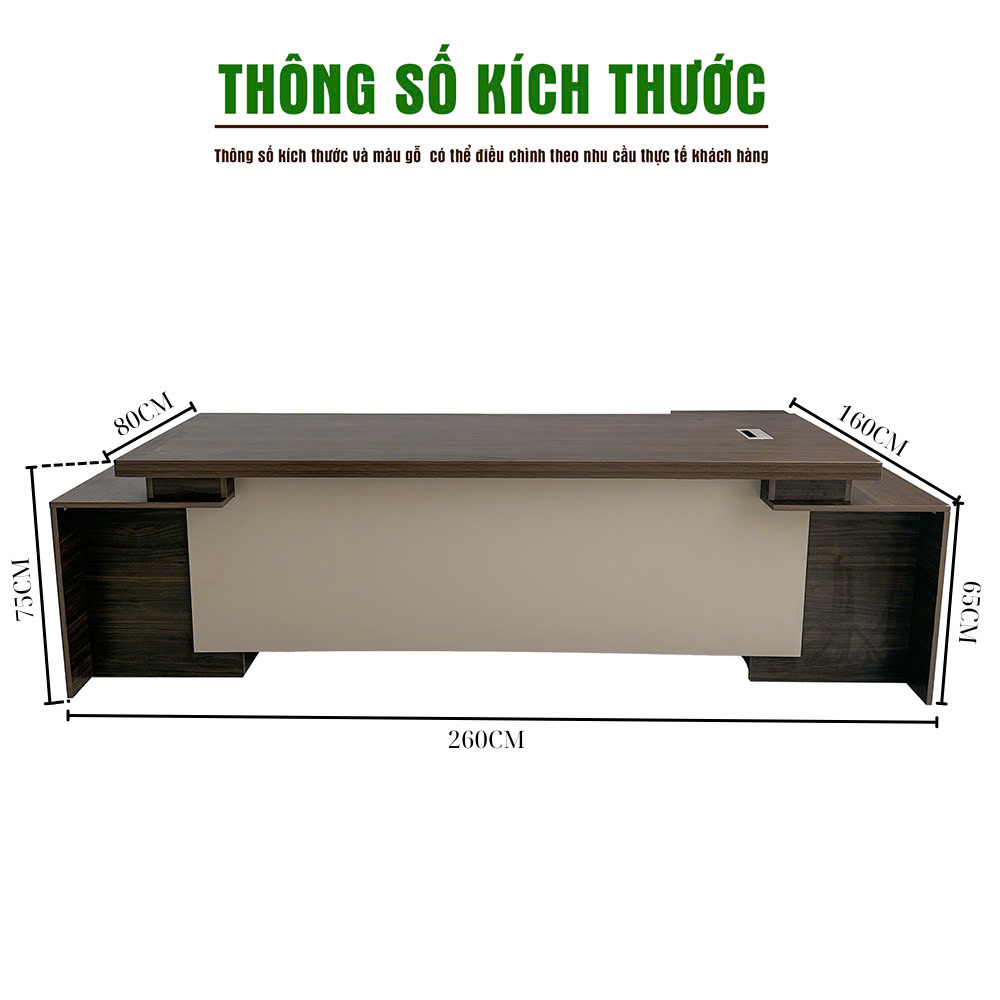 Dài 2600 – Rộng 800- Cao 750(mm) Tủ Phụ: 1600 x 500 (mm) |