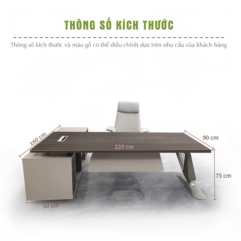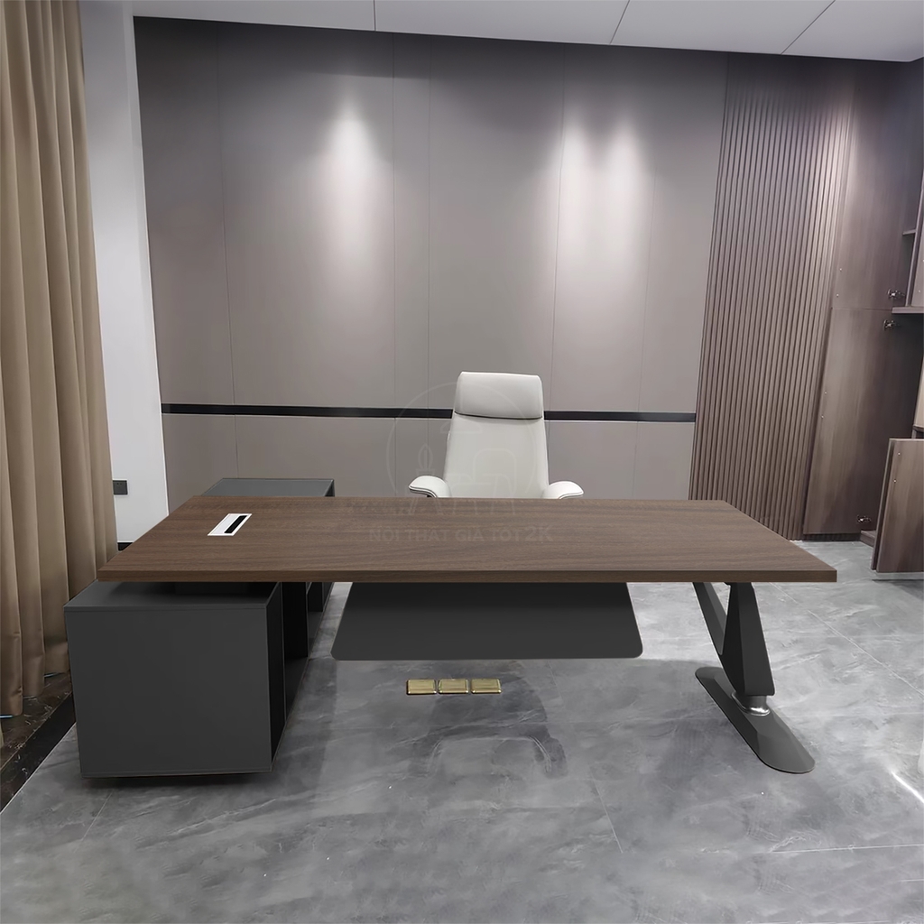 Chất liệu chân sắt nhập khẩu đảm bảo độ bền và tính ổn định, tạo nên nền tảng chắc chắn cho mọi công việc. Bàn giám đốc không chỉ là nơi làm việc, mà còn là biểu tượng của đẳng cấp và sự chuyên nghiệp.