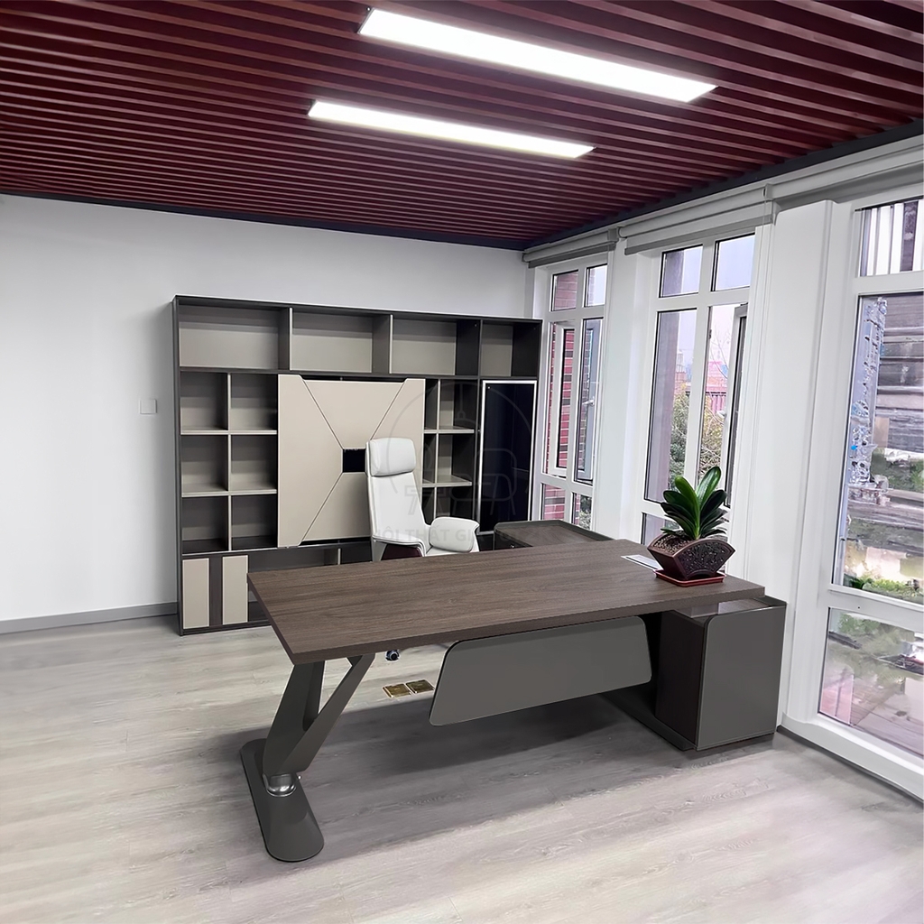 Với chân sắt nhập khẩu chất lượng cao, Bàn Giám Đốc BNK-001 này không chỉ là nơi làm việc mà còn là tác phẩm nghệ thuật. Thiết kế hiện đại, đường nét tinh tế và sự kỳ công trong từng chi tiết làm nổi bật không gian văn phòng của bạn.