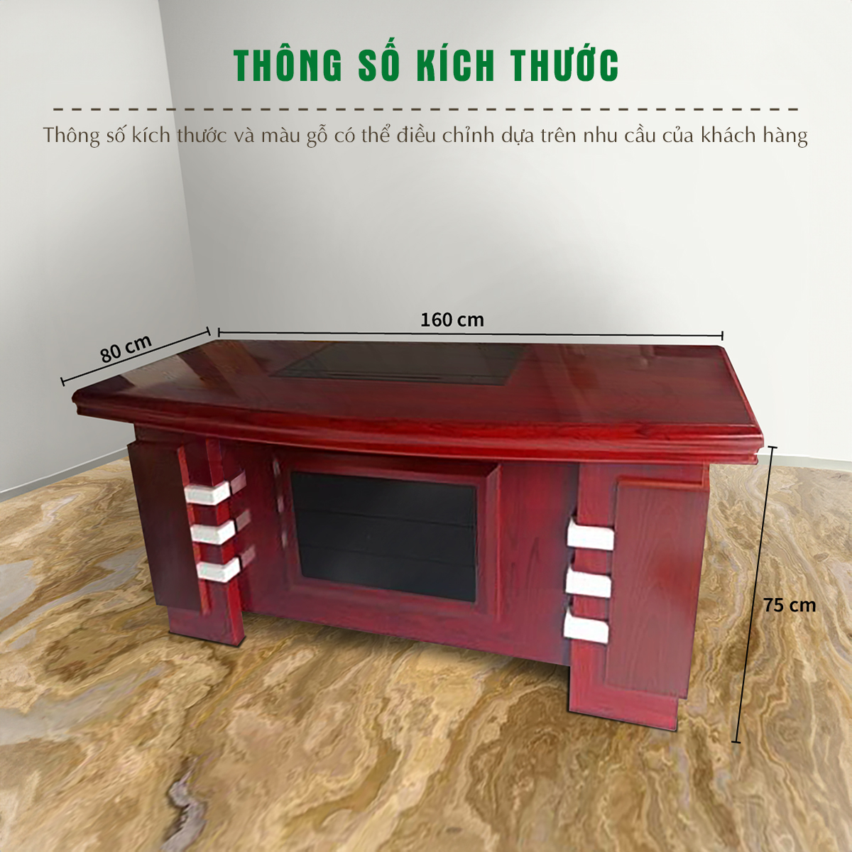 Kích Thước Rộng Rãi: Với kích thước 160cm x 80cm x 75cm, BGD057 cung cấp không gian rộng rãi để làm việc và sắp xếp tài liệu một cách thuận tiện. Đây là lựa chọn lý tưởng cho không gian làm việc vừa và nhỏ.