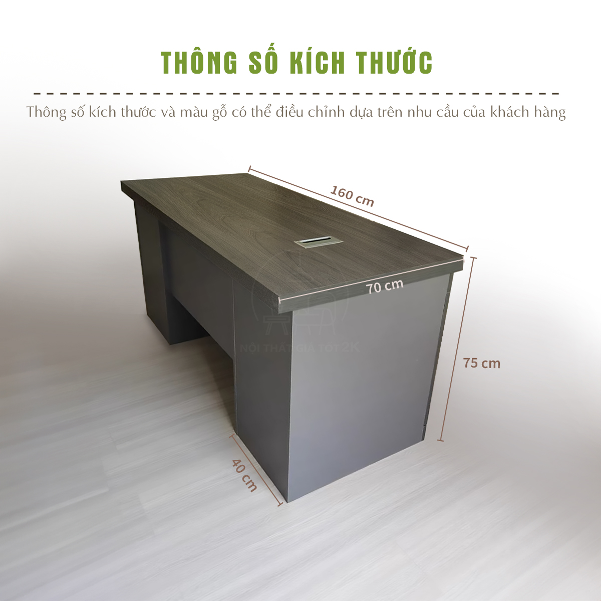| Chất liệu | Ván Gỗ MFC phủ Melamine đạt tiêu chuẩn E1 châu Âu, thân thiện với môi trường, an toàn với sức khỏe người sử dụng.Vân gỗ màu sáng phối màu đen sang trọng. |