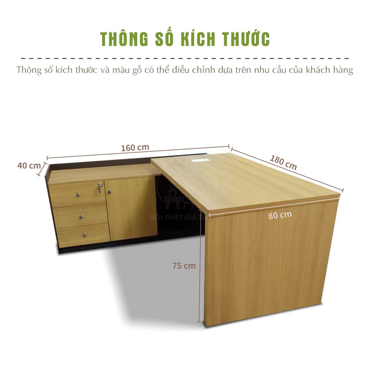Với bàn giám đốc kèm tủ phụ, bạn có thể làm việc hiệu quả hơn và tổ chức văn phòng của mình một cách thông minh và tiện lợi hơn.