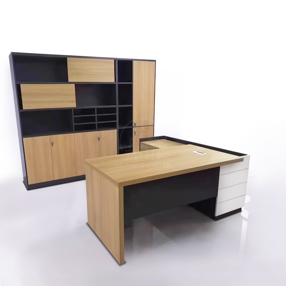 Bàn giám đốc kèm tủ phụ thường được làm từ chất liệu gỗ cao cấp, với đường nét tinh tế và kiểu dáng hiện đại, mang đến cho văn phòng của bạn một phong cách sang trọng và chuyên nghiệp.