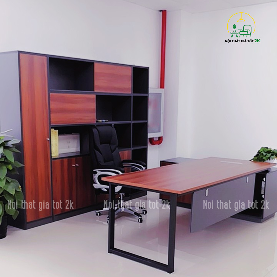 Bàn được làm từ chất liệu gỗ MDF chắc chắn và bền bỉ, đảm bảo độ bền cao và dễ dàng vệ sinh. Với chiều dài 2m, bạn sẽ có đủ không gian để làm việc và lưu trữ tài liệu cần thiết. Ngoài ra, bàn còn có nhiều ngăn kéo tiện lợi để bạn có thể sắp xếp tài liệu và vật dụng theo cách thức tốt nhất.