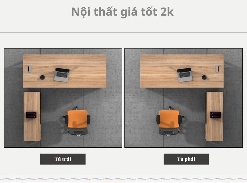 | Tủ phụ | Bàn kèm tủ phụ có ngăn đựng CPU. Ngăn kéo tủ phụ đều được trang bị ray bi 3 lớp, khóa gập. |