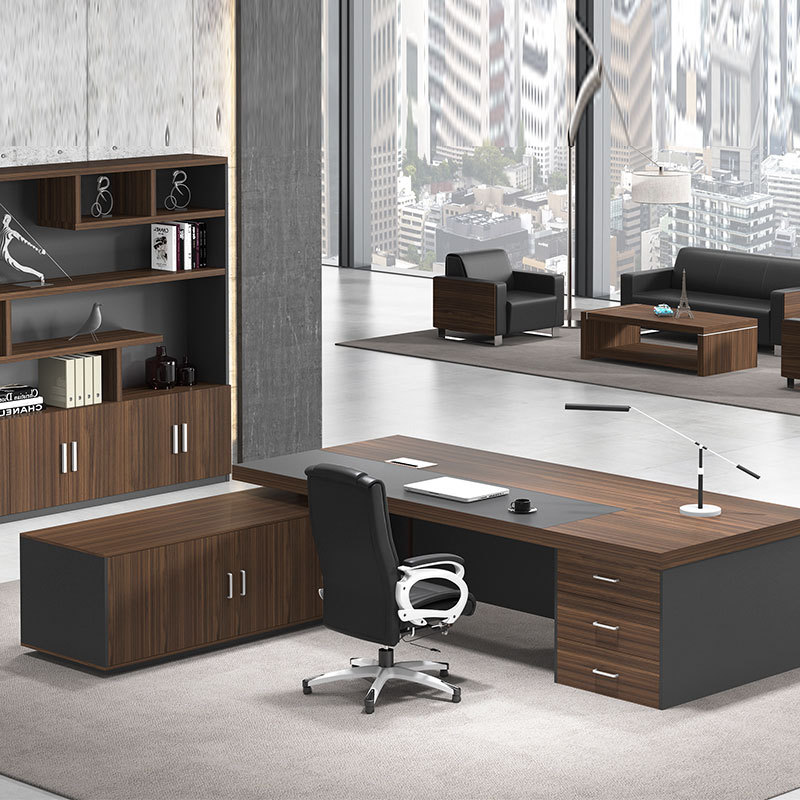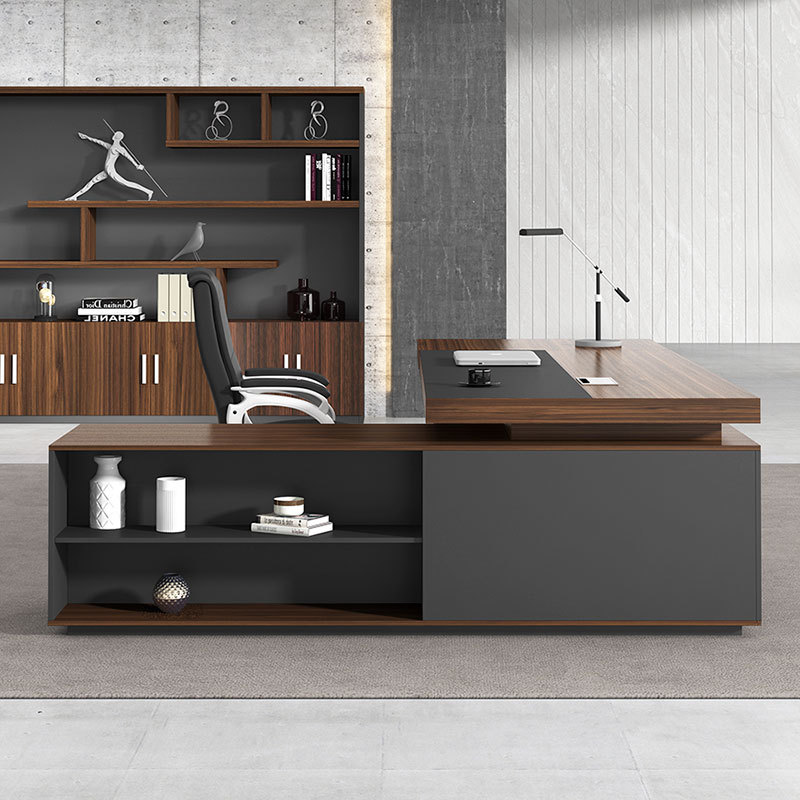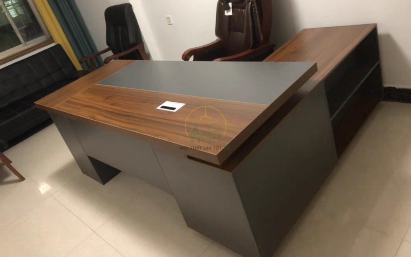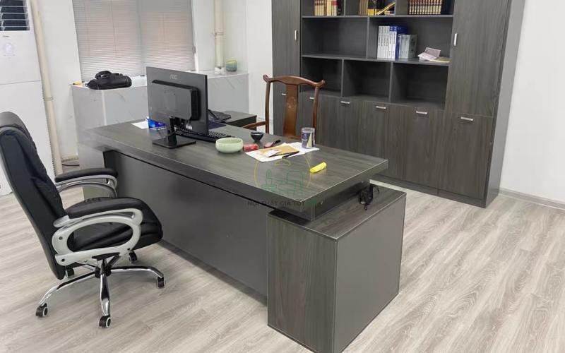Bàn giám đốc MoKuZai 2 tủ vân gỗ ghi