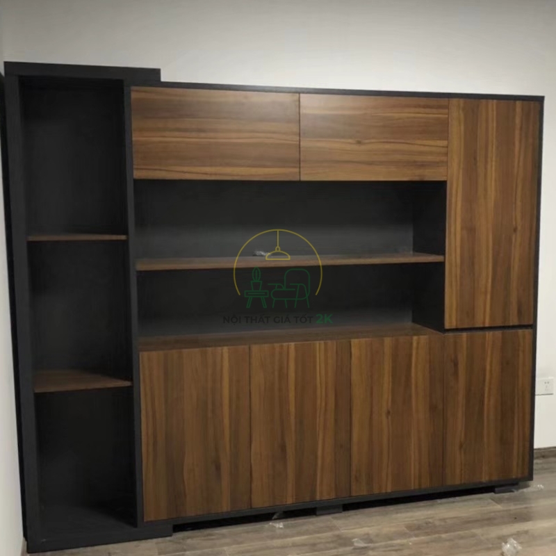 | Chất liệu | Ván Gỗ MFC phủ Melamine , đạt tiêu chuẩn E1 châu Âu, thân thiện với môi trường, an toàn với sức khỏe người sử dụng.Vân gỗ màu sáng phối màu đen sang trọng. |