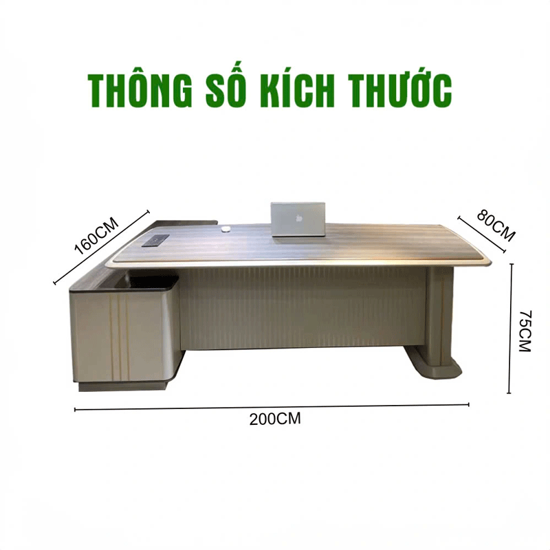 Bàn giám đốc nhập khẩu BNK07 của Nội Thất 2K là một sản phẩm cao cấp, được thiết kế tinh tế và sang trọng, phù hợp cho không gian văn phòng hiện đại. Bàn Giám Đốc Nhập Khẩu BNK07 có chất liệu ván gỗ sợi cao cấp phủ melamine đạt tiêu chuẩn cấp E1 hạn chế trầy, chống nước.