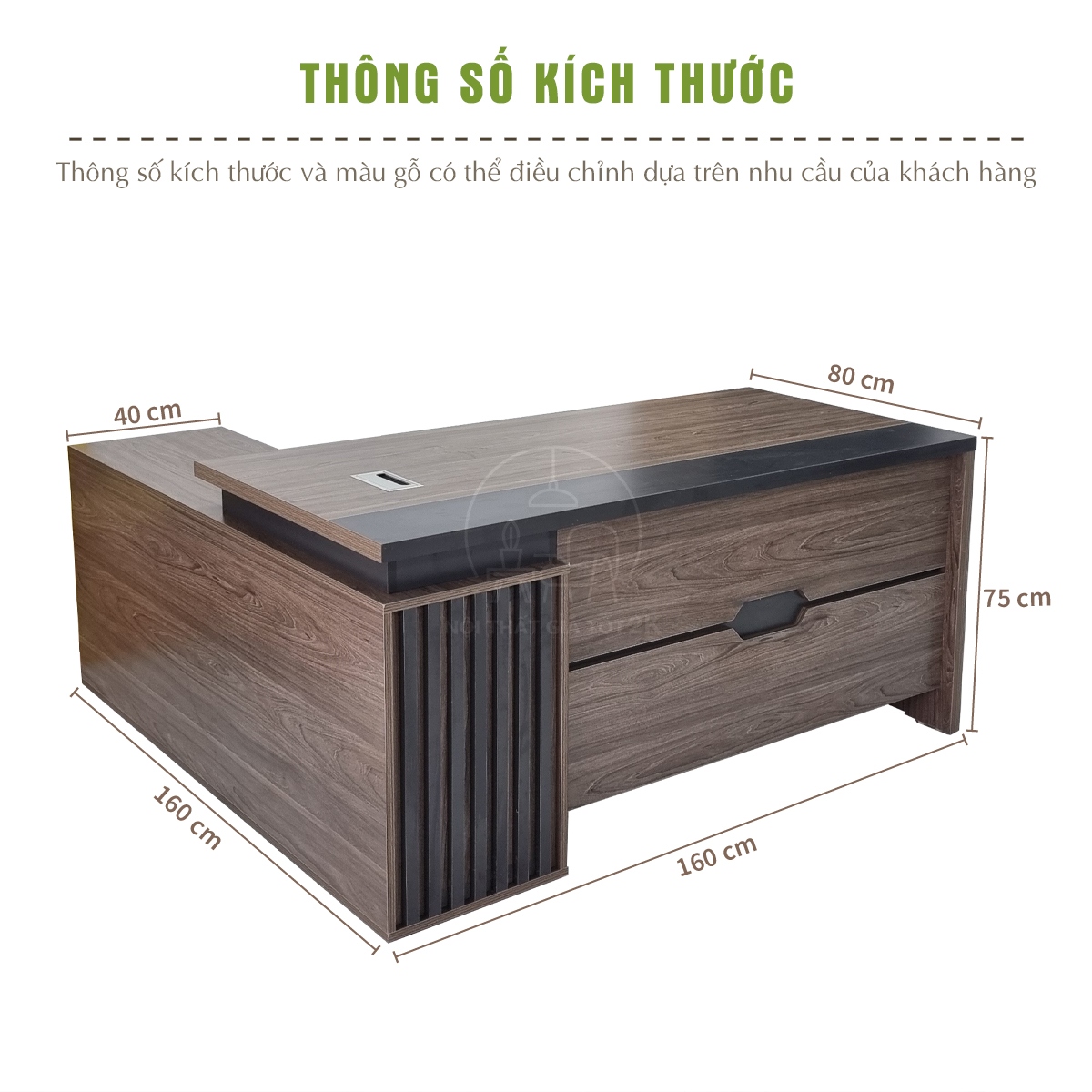 | 160cm x 80cm tủ phụ 160cm x 40cm |