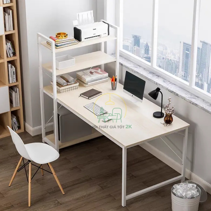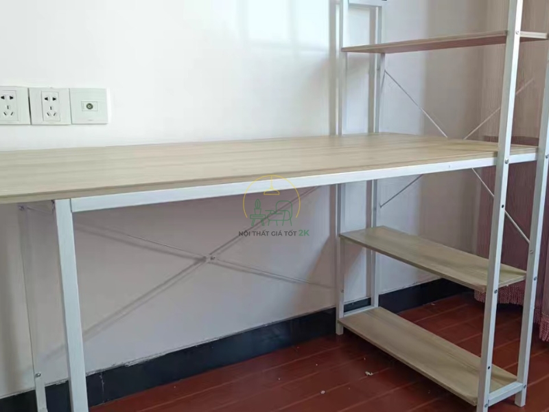 - Trên mặt bàn có hệ thống giá để đồ tiện lợi. Dưới mặt bàn có 1 giá để đồ