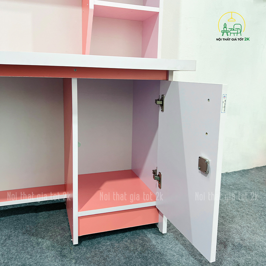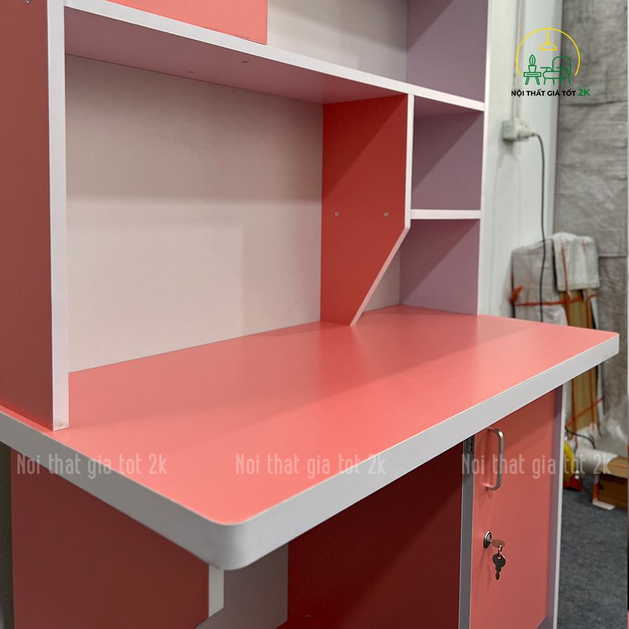 Bàn học được thiết kế để đáp ứng tất cả các nhu cầu học tập và làm việc của bạn. Kệ tích hợp được thiết kế thông minh để bạn có đủ không gian để sắp xếp sách vở, tài liệu và các vật dụng cá nhân khác một cách gọn gàng và tiện lợi. Bạn sẽ không cần phải lo lắng về không gian hạn chế vì bàn học gỗ công nghiệp kết hợp kệ của chúng tôi giúp tối ưu hóa không gian học tập.