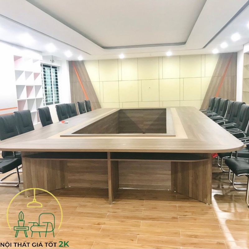 Bàn họp kích thước lớn BH-L được sản xuất trực tiếp tại xưởng Nội thất giá tốt 2k . Bàn được làm bằng gỗ công nghiệp MFC. Mặt bàn phủ Melamin chống trầy, chống xước và ẩm mốc, bóng đẹp bền màu với thời gian