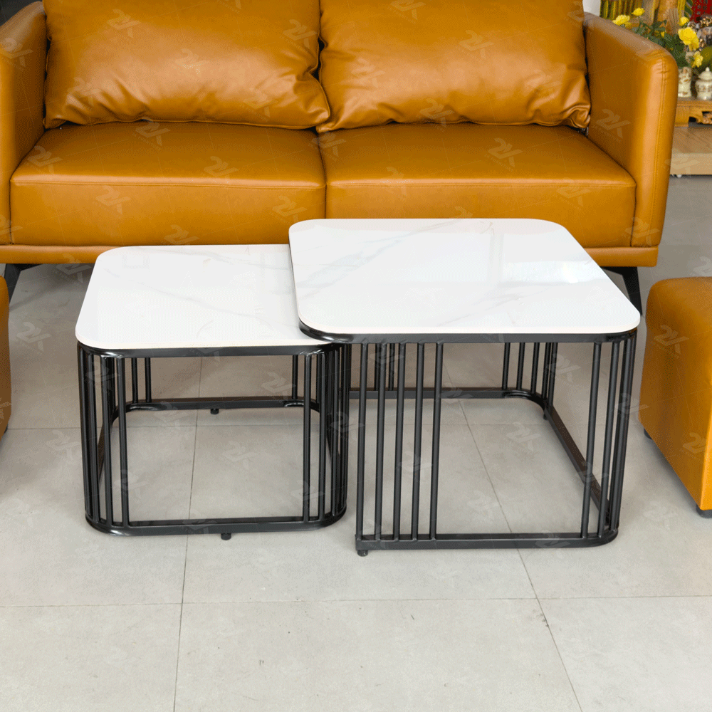 Bàn sofa mặt đá chân vuông là một tác phẩm nội thất đẹp mắt và ấn tượng. Với mặt bàn được làm từ đá tự nhiên và chân bàn vuông góc, nó tạo nên sự kết hợp hoàn hảo giữa tính thẩm mỹ và tính ứng dụng. Mặt bàn đá tự nhiên mang đến vẻ đẹp tự nhiên và sang trọng. Đá tự nhiên có các đường vân và màu sắc tự nhiên tùy thuộc vào loại đá được sử dụng. Mặt bàn đá tạo nên một cảm giác lạnh lẽo và hiện đại, đồng thời mang đến sự chắc chắn và bền bỉ cho bàn. Đá tự nhiên cũng có khả năng chống trầy xước và kháng nhiệt, làm cho bàn trở nên dễ dàng bảo quản và vệ sinh. Chân bàn vuông góc tạo ra một vẻ ngoài cứng cáp và đồng đều cho bàn