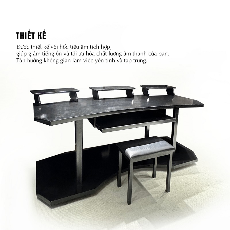 BST002 không chỉ là một chiếc bàn làm việc, mà còn là không gian nơi âm nhạc được sinh ra và hoàn thiện. Được thiết kế với hốc tiêu âm tích hợp, nó giúp giảm tiếng ồn và tối ưu hóa chất lượng âm thanh của bạn. Bạn có thể sáng tạo một cách không bị hạn chế, đồng thời tận hưởng không gian làm việc yên tĩnh và tập trung.