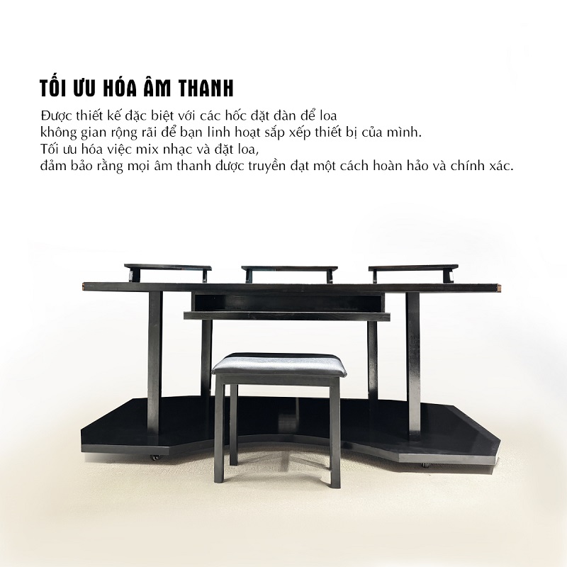Bàn BST002 không chỉ là nơi để đặt dụng cụ âm nhạc, mà còn được thiết kế đặc biệt với các hốc đặt đàn để loa và không gian rộng rãi để bạn linh hoạt sắp xếp thiết bị của mình. Điều này giúp bạn tối ưu hóa việc mix nhạc và đặt loa, đảm bảo rằng mọi âm thanh được truyền đạt một cách hoàn hảo và chính xác.