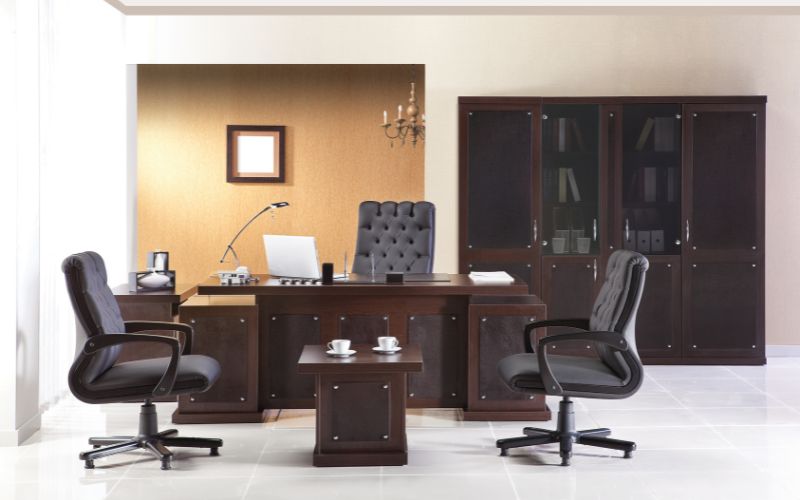 - Tận dụng tối đa diện tích của căn phòng bằng cách chọn các món đồ nội thất đa năng như bàn giám đốc có ngăn kéo lưu trữ, giá sách có tủ hồ sơ, hoặc ghế sofa có thể dùng cho các cuộc họp.
