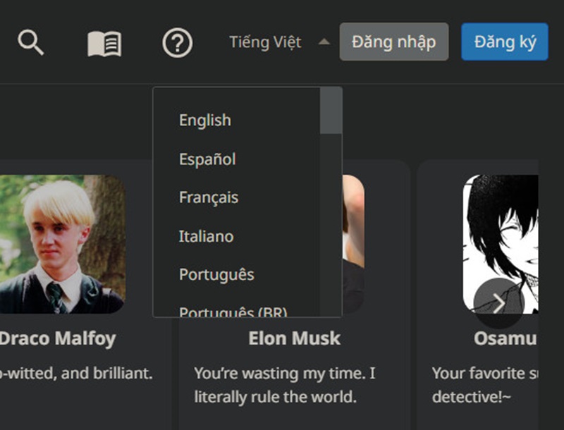 Vì ứng dụng được phát triển từ người anh nên để thuận tiện nhất và để Character AI hiểu được thì khuyến khích bạn nên sử dụng Tiếng Anh. Bạn có thể sử dụng google dịch sau đó viết lại trên google doc để có thể sửa chính tả.