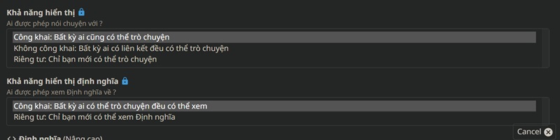 Dựa vào mục đích của bạn khi tạo char ra là để mọi người biết tới hay chỉ để bạn sử dụng cá nhân thì bạn có thể chọn khả năng hiển thị.