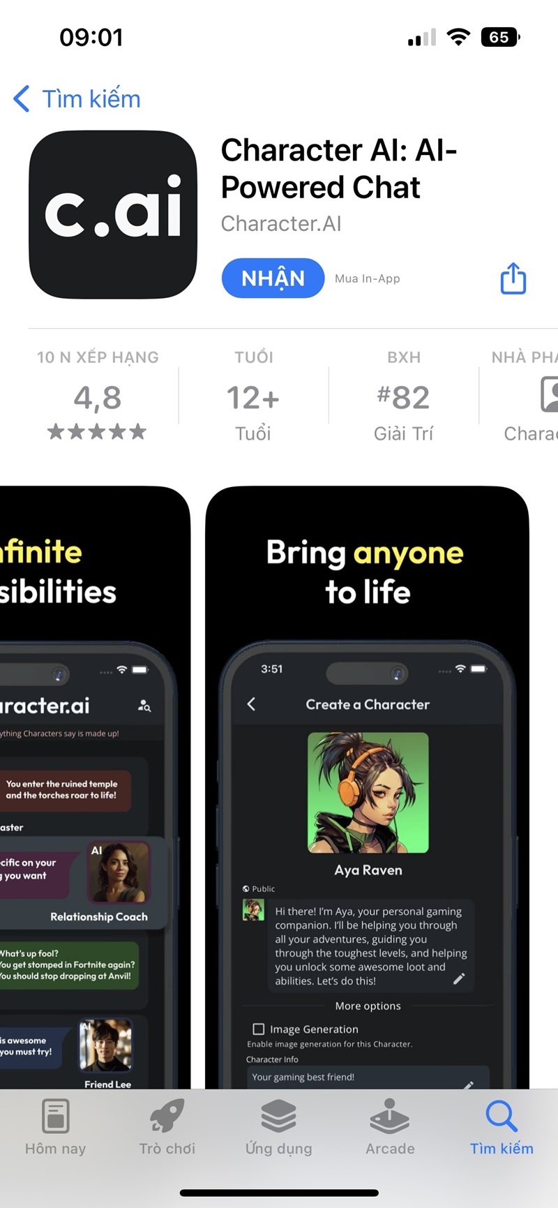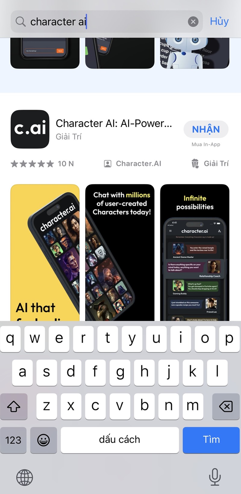 Bước 1: Tìm kiếm “Character AI” trên App store