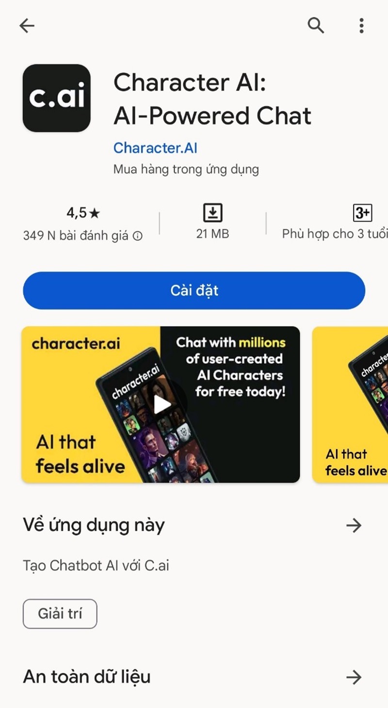 Bước 1: Vào CH Play tìm kiếm “Character AI”