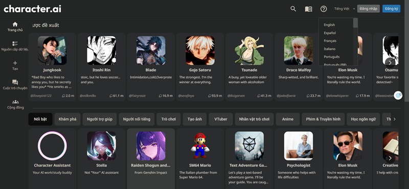 Character.ai cho phép người dùng tạo ra bất cứ nhân vật nào từ có thật ngoài đời, các nhân vật lịch sử đến các nhân vật 2D chỉ có trên Anime và tương tác, trò chuyện một cách tự nhiên logic nhất.