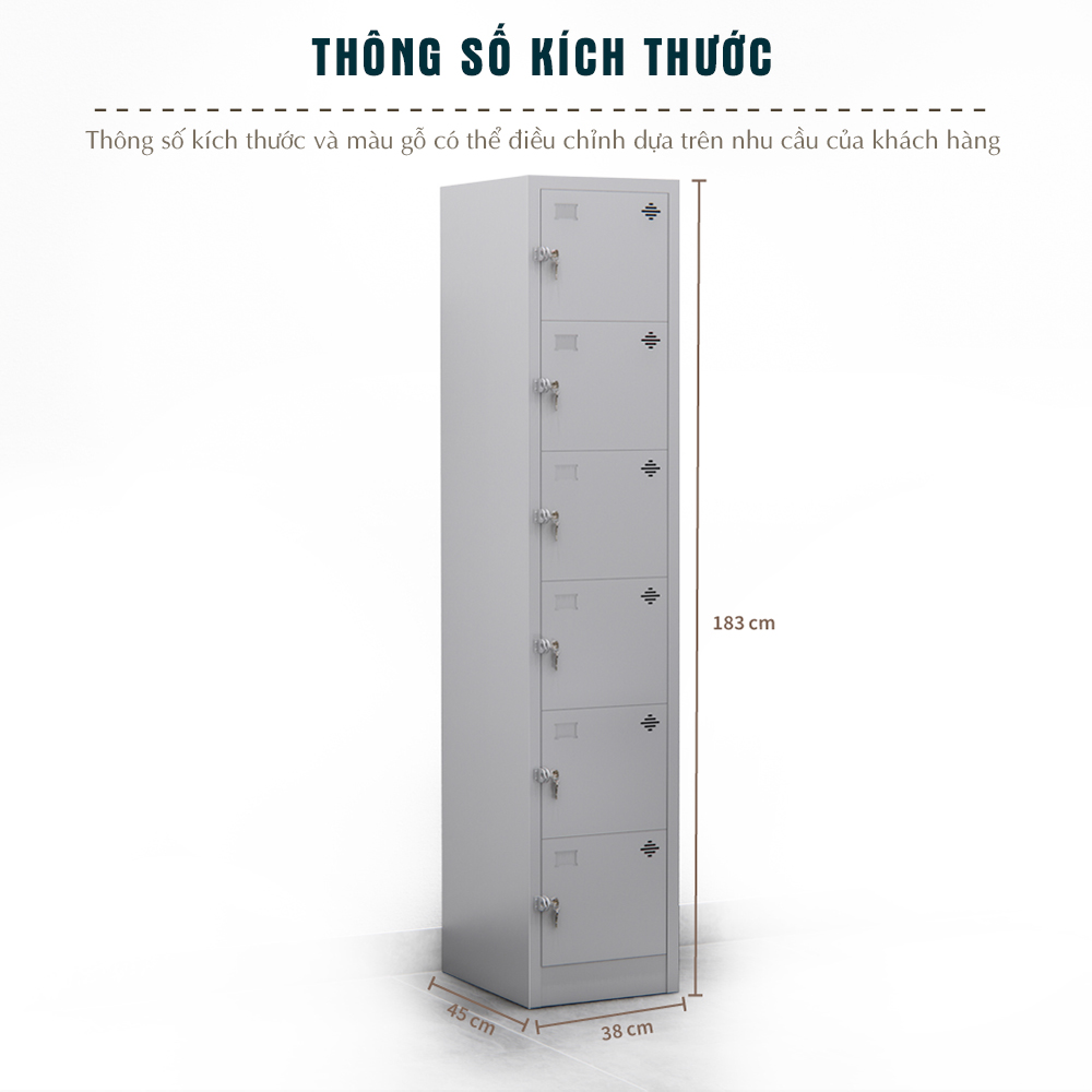 Tủ locker sắt 2KK6Đ là sản phẩm lý tưởng dành cho các doanh nghiệp, văn phòng, trường học, phòng gym, hoặc các khu vực công cộng có nhu cầu lưu trữ đồ cá nhân cho nhiều người sử dụng. Với thiết kế 6 cánh mở riêng biệt, mỗi khoang đều được trang bị khóa an toàn, tủ locker 2KK6Đ mang đến sự tiện lợi và bảo mật tối ưu cho người dùng.