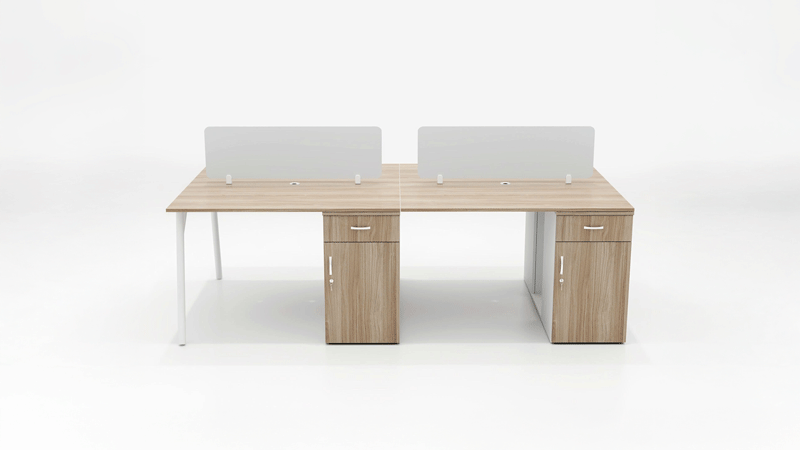 Việc bố trí 4 người trên một cụm bàn giúp giảm diện tích sử dụng, tăng tiện lợi giao tiếp, phối hợp công việc mà vẫn đảm bảo không gian riêng tư với vách ngăn.