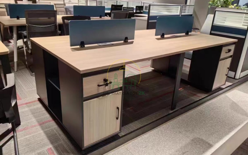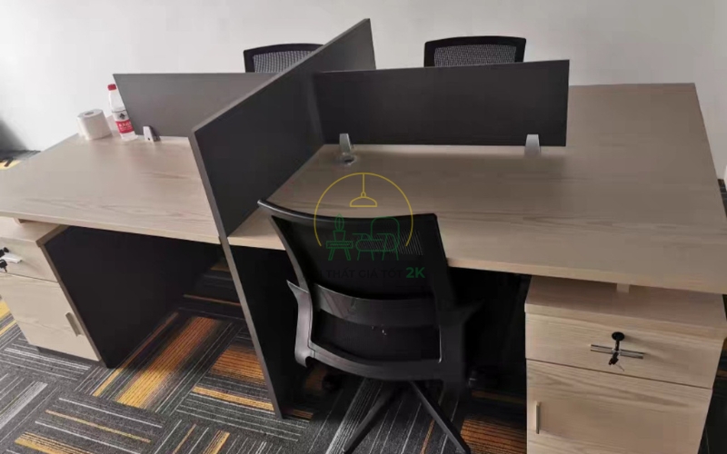 Cụm bàn làm việc chân gỗ cho 4 người là sự lựa chọn hoàn hảo cho các công ty, doanh nghiệp hay các văn phòng chia sẻ đang tìm kiếm một giải pháp hiệu quả về không gian làm việc. Thiết kế cụm bàn này không chỉ mang lại tính thẩm mỹ cao, mà còn mang lại sự tiện nghi và đảm bảo tính tiết kiệm.