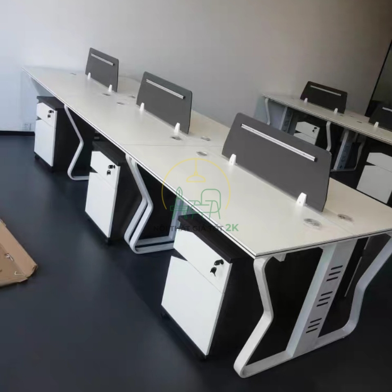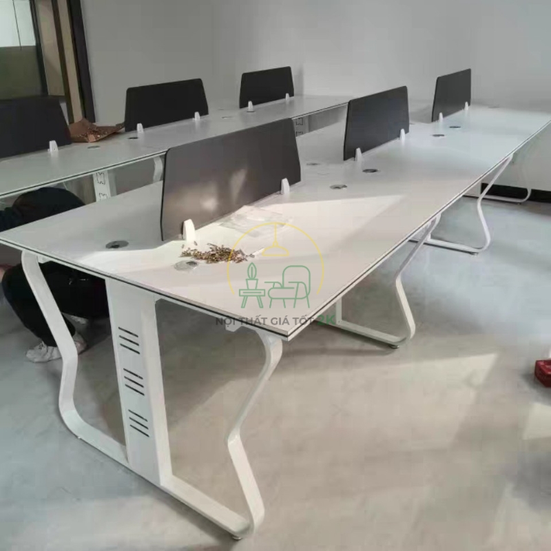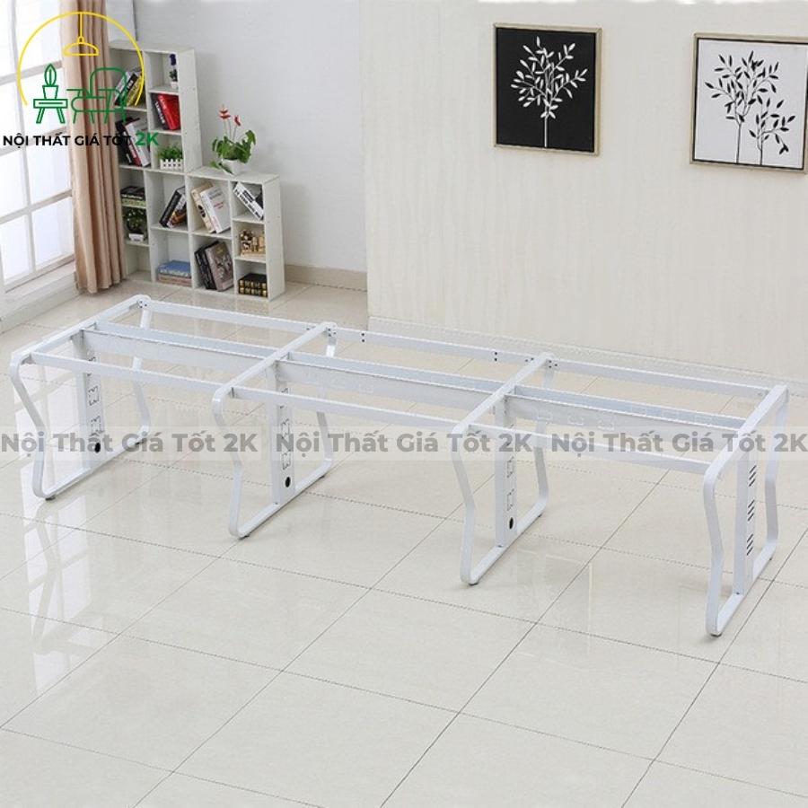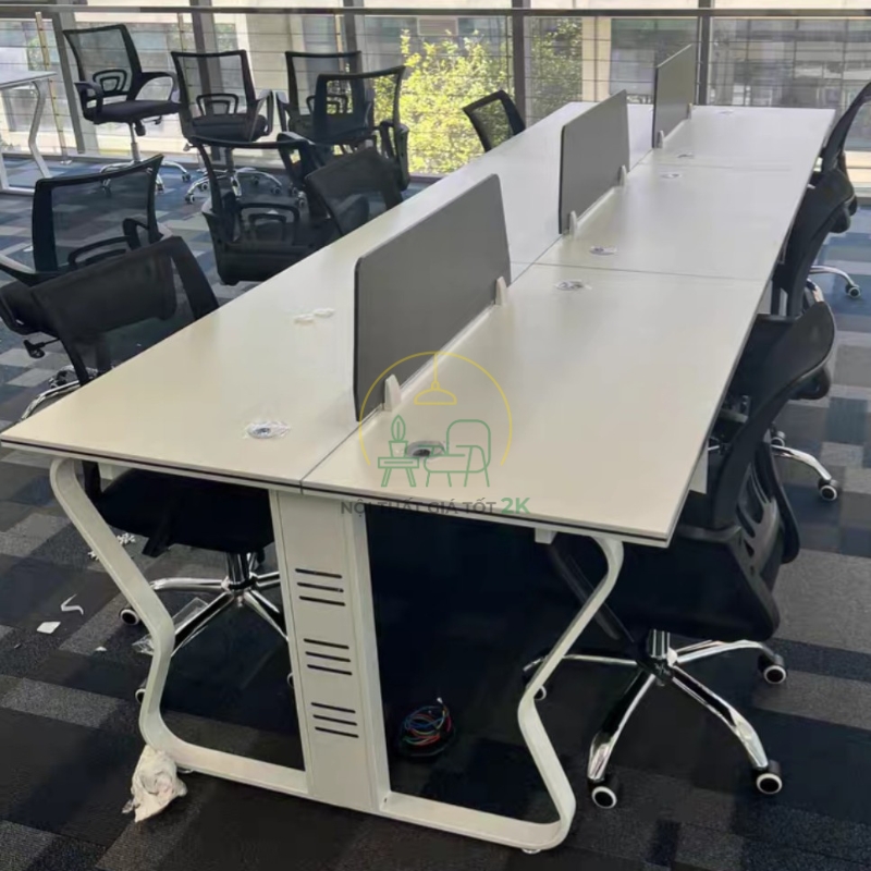 Mặt bàn gỗ công nghiệp MFC phủ Melamine chống xước, chống cong vênh, mối mọt. Bền bỉ theo thời gian. Có nhiều màu sắc lựa chọn phù hợp sở thích, màu chủ đạo văn phòng. Khung sắt sơn tĩnh điện, ống chân 40x40mm, giằng bàn 25x50mm sang trọng chống han gỉ và bong tróc. Khung bàn tạo nên cho bàn kiểu dáng hiện đại, vững chắc.Dưới khung bàn có đế chân nhựa chịu lực giúp hạn chế tiếng ồn khi di chuyển và tránh làm trầy xước nền nhà đặc biệt là sàn gỗ.  |