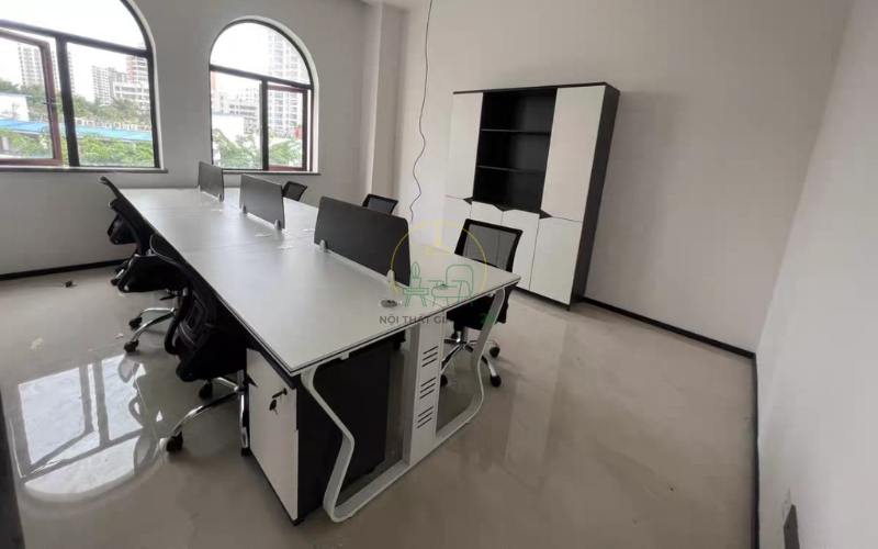 Thiết kế của cụm bàn làm việc 6 người Atlas AL6 người giúp mỗi người có đủ không gian để làm việc và đồng thời cho phép họ giao tiếp và hợp tác với nhau một cách hiệu quả. Các vách ngăn giữa các chỗ ngồi tạo ra một không gian riêng tư và giúp giảm tiếng ồn, giúp tăng tính riêng tư và tập trung cho công việc.