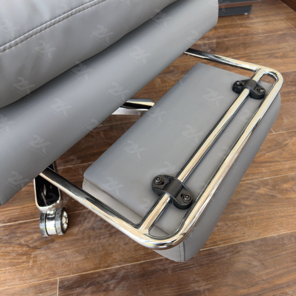 . Tựa lưng đệm mật độ cao . Ghế xoay 360 độ, Piston nâng hạ . Tay cầm khung thép, đệm tay êm ái. . Nâng khí Chrome. . Đế nhôm có bánh xe xoay. |