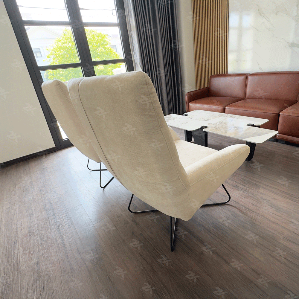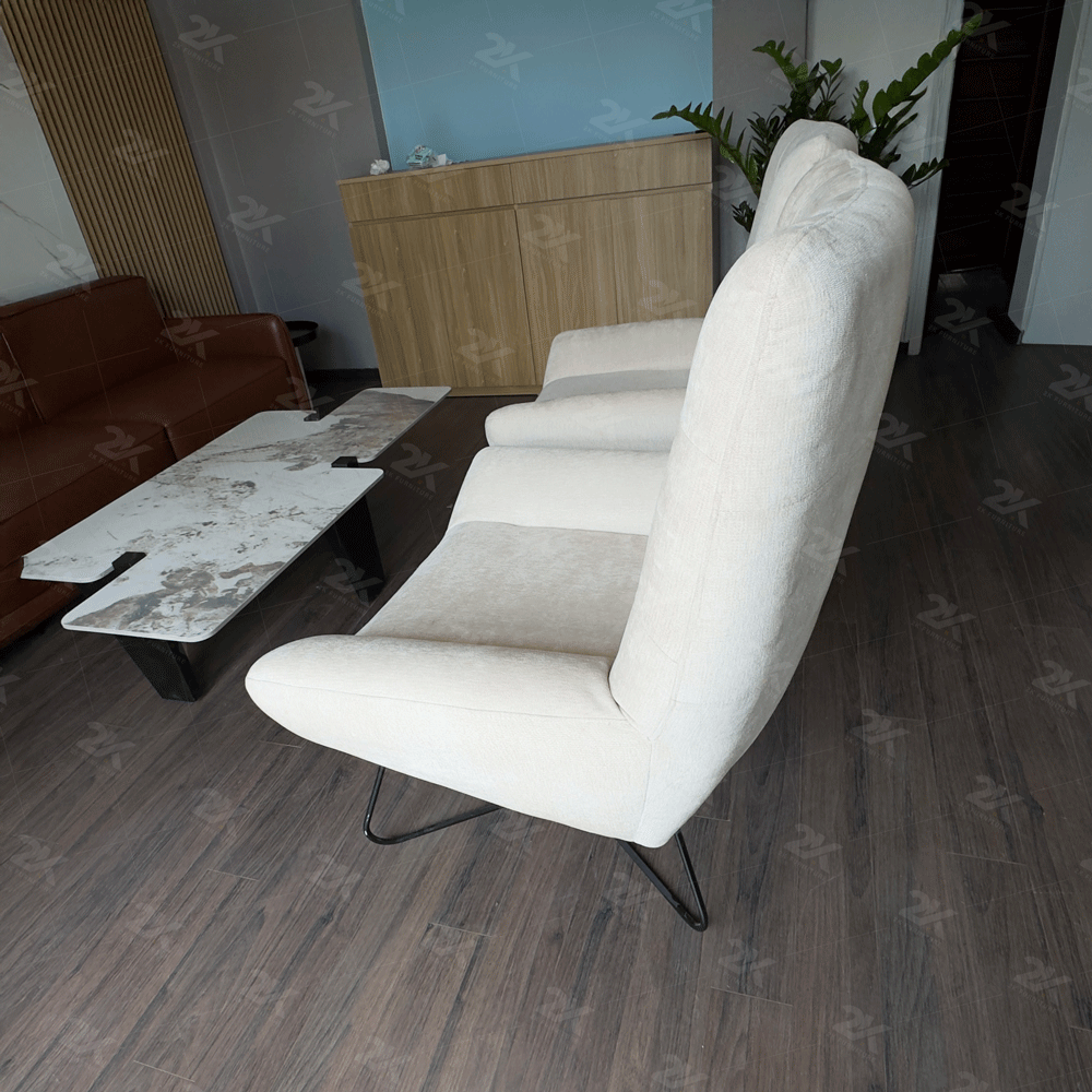 Mẫu Ghế Sofa Đơn SFD002 ghế thư giãn bọc nỉ chân sắt mang phong cách hiện đại, tối giản và tinh tế. Chất liệu vải nỉ cao cấp mềm mại, êm ái kết hợp chân sắt sơn tĩnh điện chắc chắn tạo nên sự cân bằng giữa thẩm mỹ và độ bền. Tông màu kem be nhẹ nhàng giúp không gian thêm sáng và sang trọng, phù hợp cho phòng khách, văn phòng hoặc khu vực chờ tiếp khách.