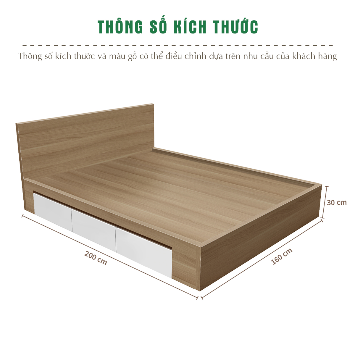 - Giường được làm từ gỗ công nghiệp MFC (Melamine Faced Chipboard), loại gỗ công nghiệp nổi tiếng với độ bền cao và khả năng chống mối mọt, cong vênh.