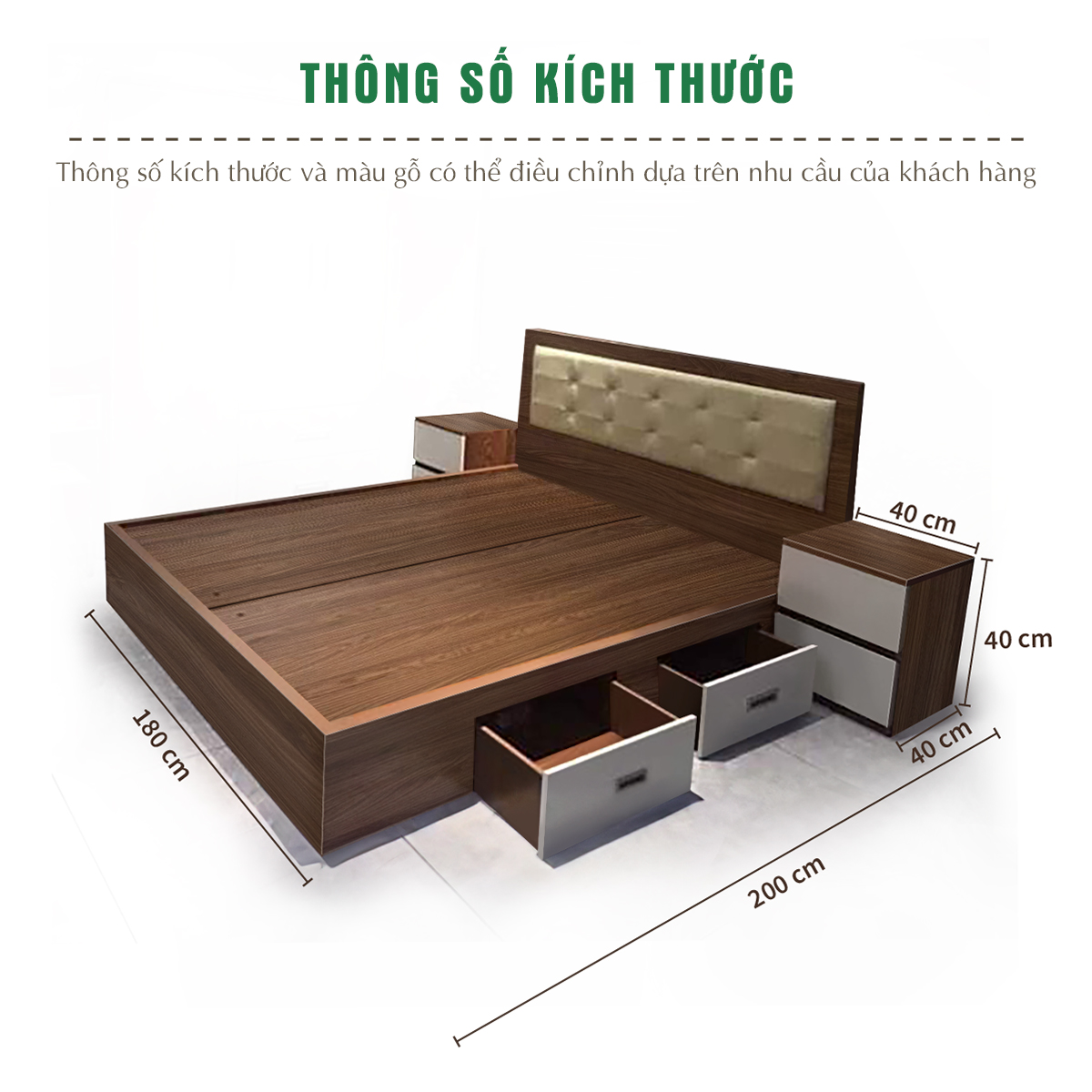Giường ngủ gỗ công nghiệp GN02M6 được thiết kế với kích thước rộng rãi, phù hợp cho các phòng ngủ có diện tích từ trung bình đến lớn. Với chiều rộng 180cm và chiều dài 200cm, giường này mang lại không gian ngủ thoải mái cho hai người lớn.