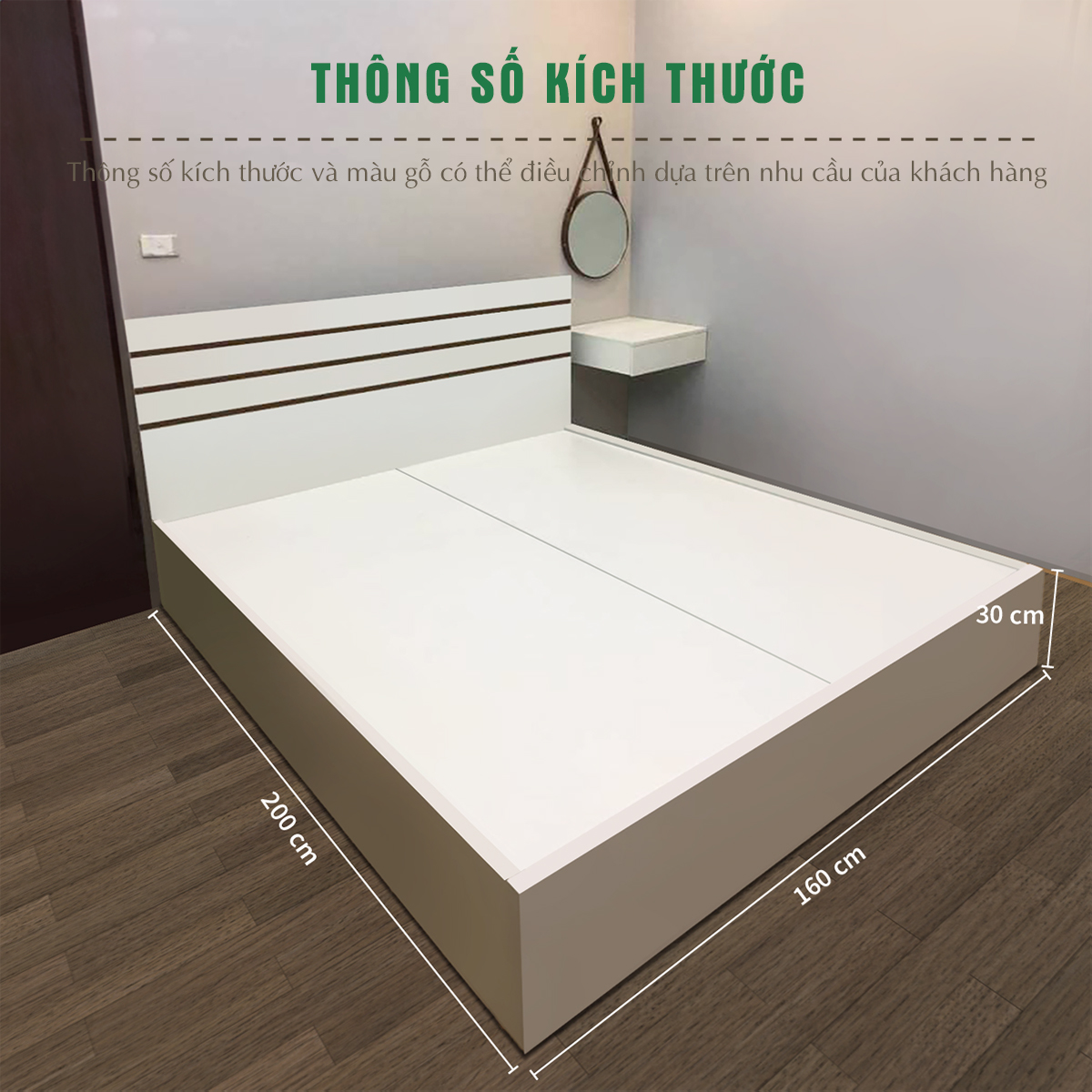 Giường ngủ gỗ công nghiệp GN06M6 được thiết kế với kích thước tiêu chuẩn rộng 160cm và dài 200cm, phù hợp cho các phòng ngủ có diện tích trung bình. Sản phẩm này mang đến không gian nghỉ ngơi thoải mái và tiện nghi cho người sử dụng.