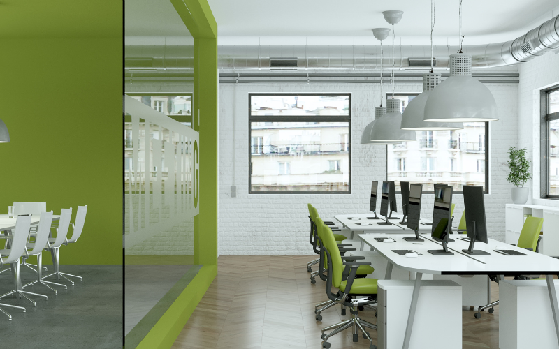 Nên lưu ý đến tầm nhìn và ánh sáng tự nhiên trong không gian văn phòng, để chọn màu sắc phù hợp và tăng cường cảm giác thoáng đãng và sáng tạo.