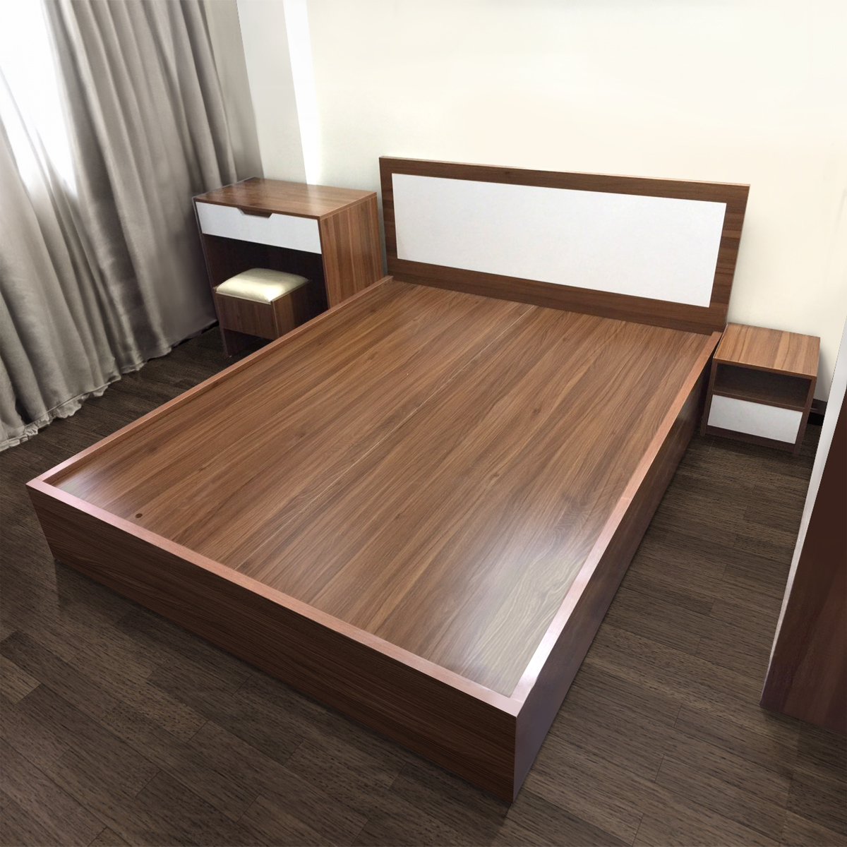 Thiết kế hiện đại, tích hợp nhiều chức năng như ngăn kéo lưu trữ, giúp tiết kiệm không gian và mang lại sự tiện nghi cho phòng ngủ.