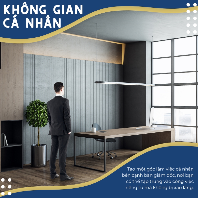 Tạo một góc làm việc cá nhân bên cạnh bàn giám đốc, nơi bạn có thể tập trung vào công việc riêng tư mà không bị xao lãng.