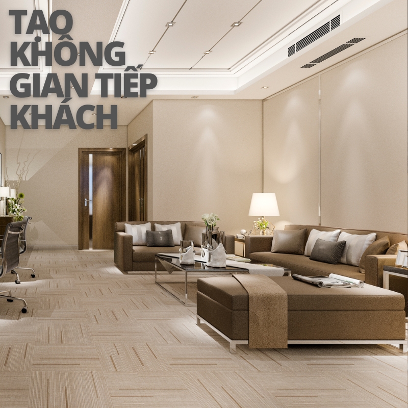 Nếu bạn thường xuyên tiếp khách, hãy sắp xếp một góc hoặc không gian riêng để tiếp khách. Đảm bảo không gian này thoải mái và thể hiện chất lượng và sự chuyên nghiệp.