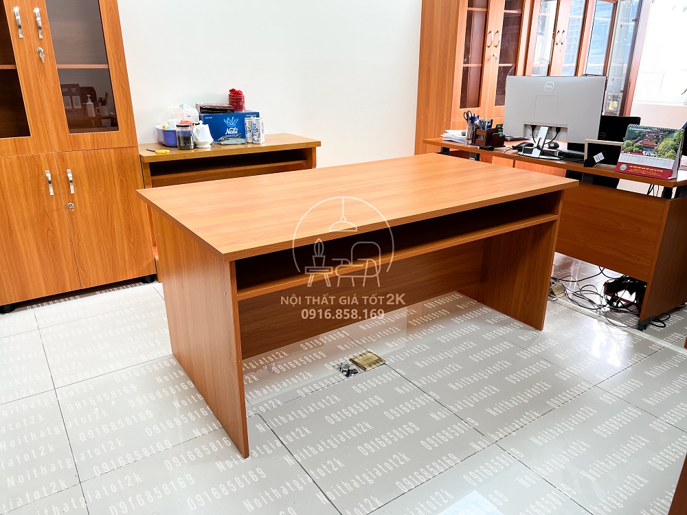 Bàn nhân viên của Nội Thất 2K được thiết kế hiện đại, tạo không gian làm việc thoải mái và chuyên nghiệp. Bàn nhân viên được làm từ gỗ công nghiệp, bề mặt phủ Melamine chống trầy xước, chống thấm nước. Bàn có nhiều ngăn kéo và kệ để tài liệu, giúp nhân viên dễ dàng sắp xếp và quản lý công việc. Kích thước và kiểu dáng bàn có thể tùy chỉnh theo nhu cầu sử dụng.
