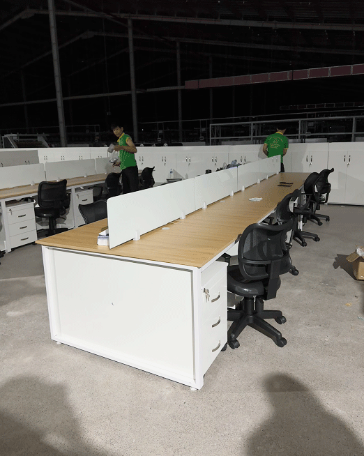 Hệ thống bàn làm việc module được thiết kế thông minh, dễ dàng bố trí thành từng cụm 2–4–6 người, giúp tăng tính kết nối giữa các bộ phận.