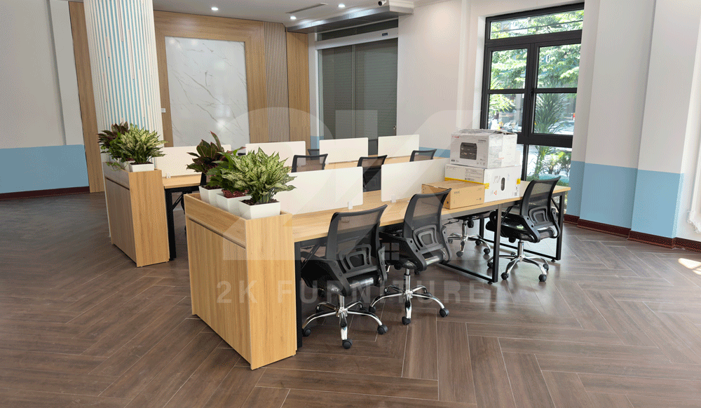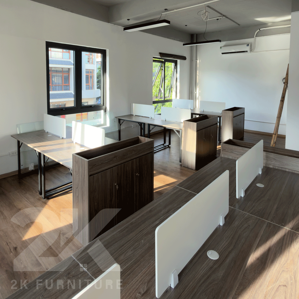 Sản phẩm đồng bộ từ bàn, ghế, tủ cho đến vách ngăn – tạo nên tổng thể thống nhất.